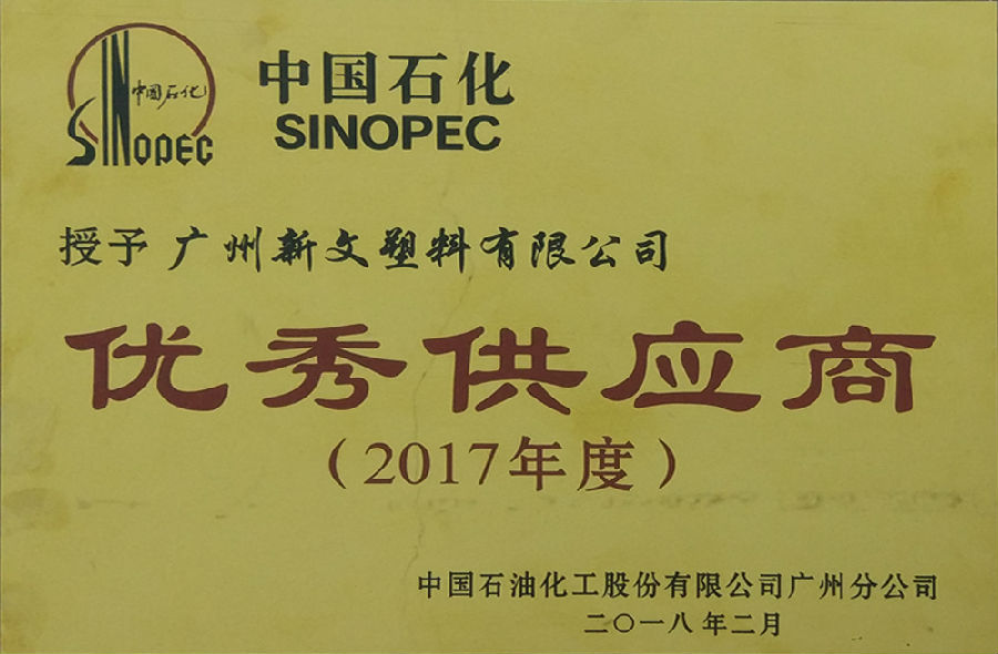 我司榮獲中國石化2017年度優(yōu)秀供應(yīng)商